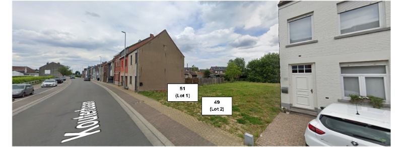 Een verkaveling bestaande uit 2 percelen bouwgrond geschikt voor het realiseren van twee centraal gelegen rijwoningen met garage en tuin.