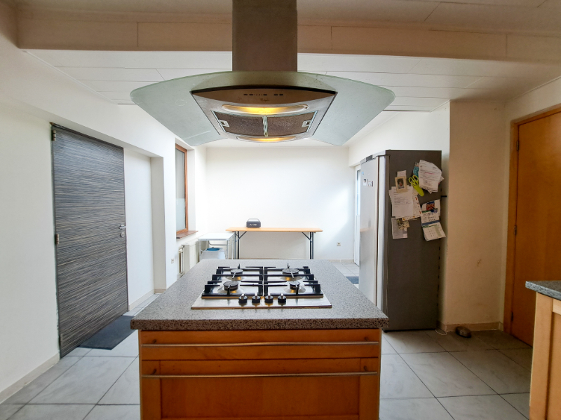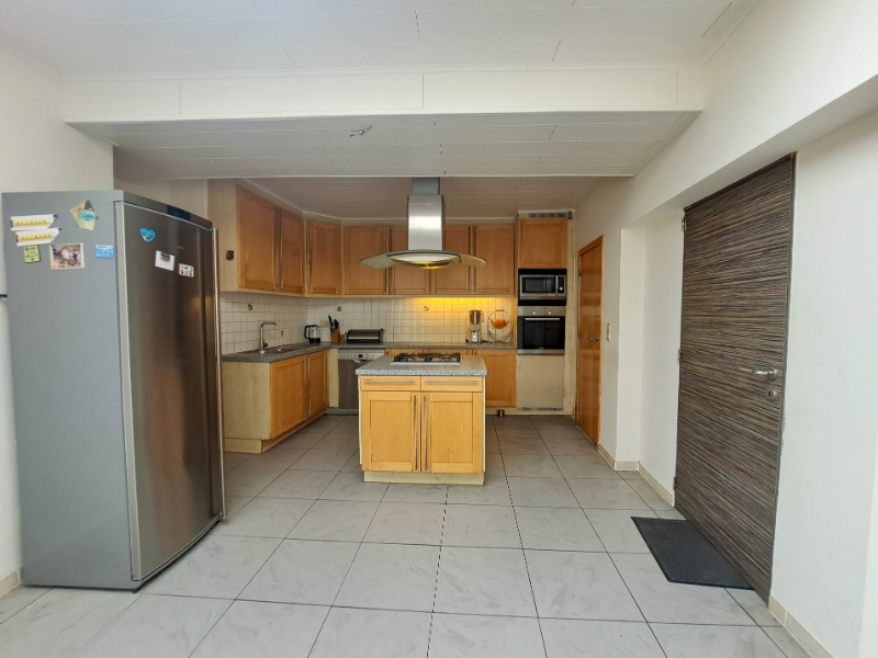 Bij het betreden van de woning komt u binnen in de inkomhal, die toegang geeft tot de gezellige leefruimte met plaats voor zowel een salon als een eetruimte. Vervolgens bereikt u de ruime, ingerichte leefkeuken die uitgeeft op de veranda. Van daaruit heeft u toegang tot de koer met berging. Op het gelijkvloers bevindt zich verder een badkamer uitgerust met lavabo, bad, toilet en aansluitingen voor wasmachine en droogkast. Daarnaast is er nog een kleine kelder aanwezig.