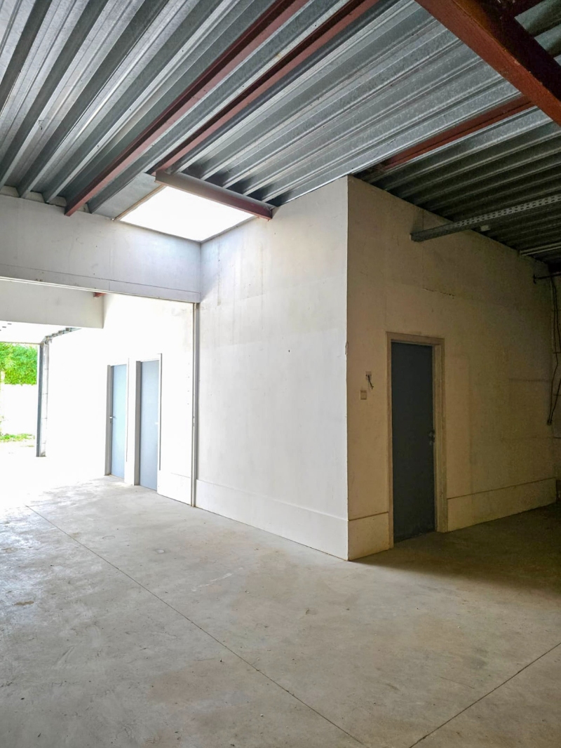 Achter de woning bevindt zich een loods die voorheen dienst deed als drukkerij. Deze polyvalente ruimte is een droom voor elke zelfstandige of hobbyist die nood heeft aan een atelier of stockage. Voor de loods is er bovendien parkeergelegenheid voorzien voor twee wagens op eigen terrein.