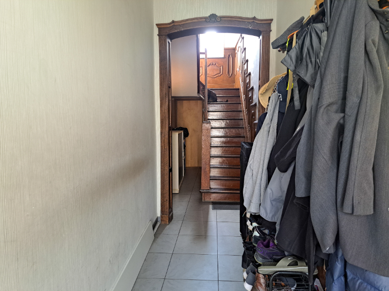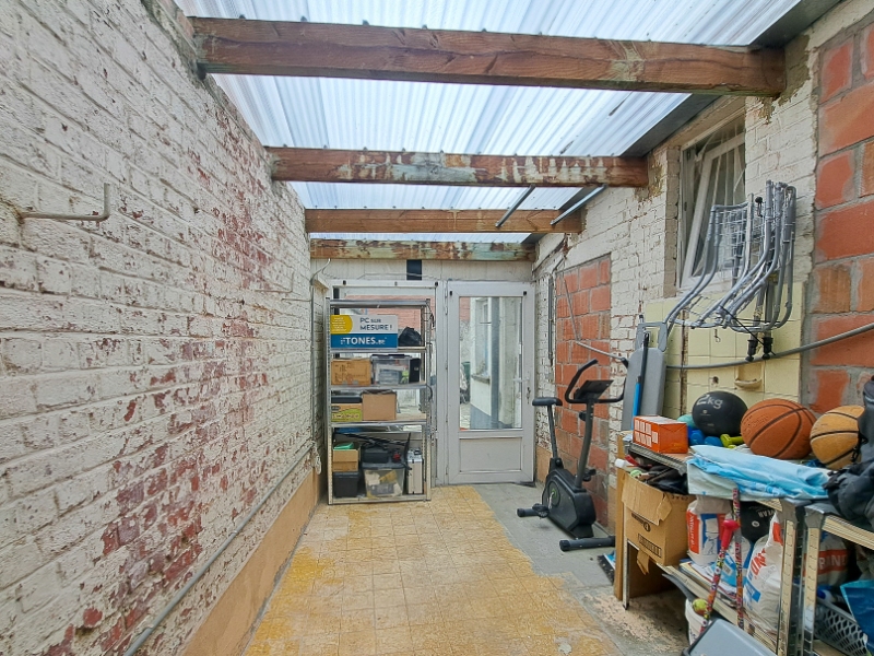 Bij het betreden van de woning komt u binnen in de inkomhal, die toegang geeft tot de gezellige leefruimte met plaats voor zowel een salon als een eetruimte. Vervolgens bereikt u de ruime, ingerichte leefkeuken die uitgeeft op de veranda. Van daaruit heeft u toegang tot de koer met berging. Op het gelijkvloers bevindt zich verder een badkamer uitgerust met lavabo, bad, toilet en aansluitingen voor wasmachine en droogkast. Daarnaast is er nog een kleine kelder aanwezig.