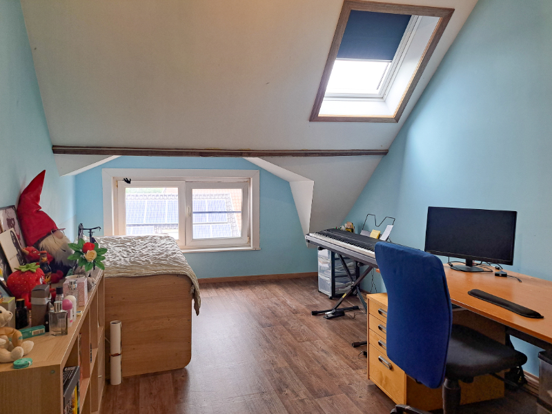 Op de eerste verdieping zijn er drie slaapkamers. De tweede verdieping biedt extra ruimte met een bureauruimte, een vierde slaapkamer en een annex voorzien van lavabo en toilet.